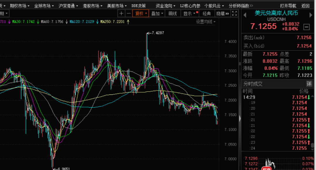 随着中国股市的走强,人民币的确也时常会相伴而行。去年9月底,美元兑离岸人民币一度跌破7,人民币升至6.965附近。那么,此次是否会再度破7?